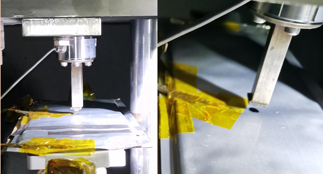 在電池內(nèi)短路測(cè)試國際標(biāo)準(zhǔn)中, IEC62133標(biāo)準(zhǔn)的內(nèi)短路測(cè)試方法與電池實(shí)際失效過程最接近,可以提前預(yù)設(shè)內(nèi)短路點(diǎn)位置,可以模擬單層內(nèi)短路失效情況,但是對(duì)于樣品制備、擠壓位置和擠壓力的控制要求很高。