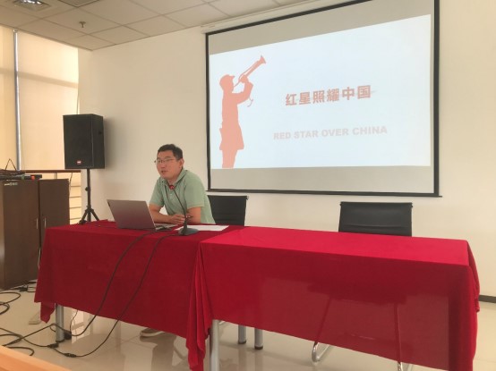 柏祥濤分享了美國作者埃德加·斯諾所著的《紅星照耀中國》一書?;顒赢斕煺敲飨攀?6周年紀念日,今天分享的這本書籍還原原著中的諸多細節(jié),有血有肉地塑造與再現(xiàn)了毛澤東、周恩來、彭德懷等革命領(lǐng)袖的寫實形象,客觀公正地了解這支成功建立共和國的革命隊伍,詩意詮釋“不忘初心”的真諦,給了在場很多同事啟發(fā)。