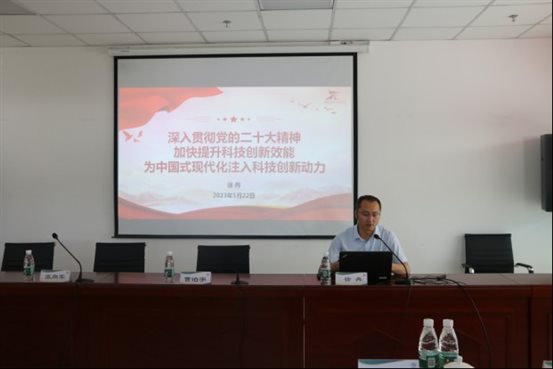 國(guó)聯(lián)研究院黨委書(shū)記、總經(jīng)理徐冉代表公司黨委匯報(bào)了國(guó)聯(lián)研究院主題教育進(jìn)展情況,并講授專(zhuān)題黨課,題目是《深入貫徹黨的二十大精神,加快提升科技創(chuàng)新效能,為中國(guó)式現(xiàn)代化注入科技創(chuàng)新動(dòng)力》。