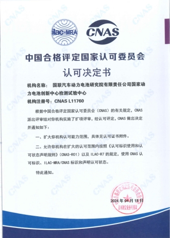 國家動力電池創(chuàng)新中心順利通過CNAS及CMA擴項