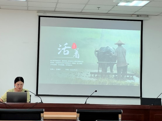 財務(wù)管理部王海珍介紹了《活著》,分享作者創(chuàng)作思路、主人公及家人的經(jīng)歷和心理變化,以及自己對于生活的感悟。